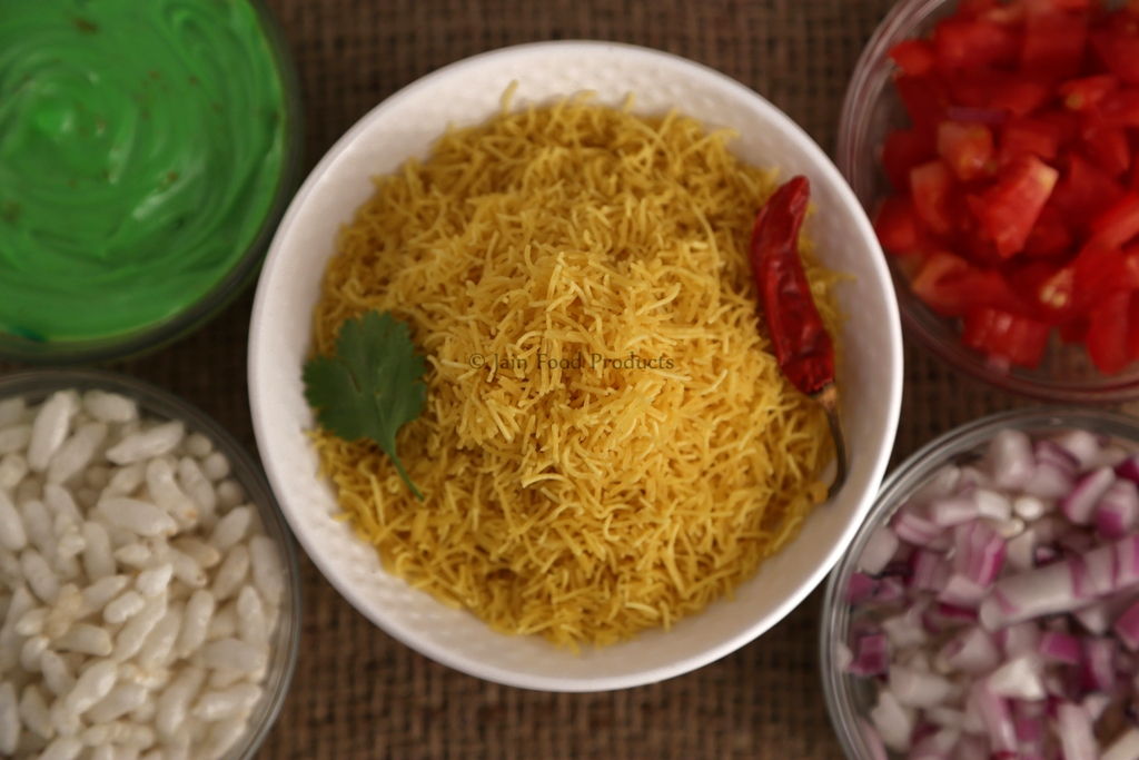 The Gol Gappas and Papri Chat of Great Indian Chaat Bazaar can not do without it! The super thin golden stands of Nylon Sev sits proudly atop every Chat Mix.