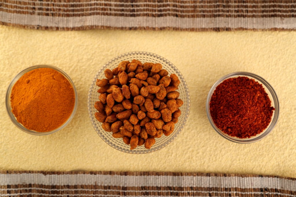 It is a crispy fried peanuts coated in a delicious spiced batter and then deep fried to a luscious deep brown and spices sprinkled allover it.